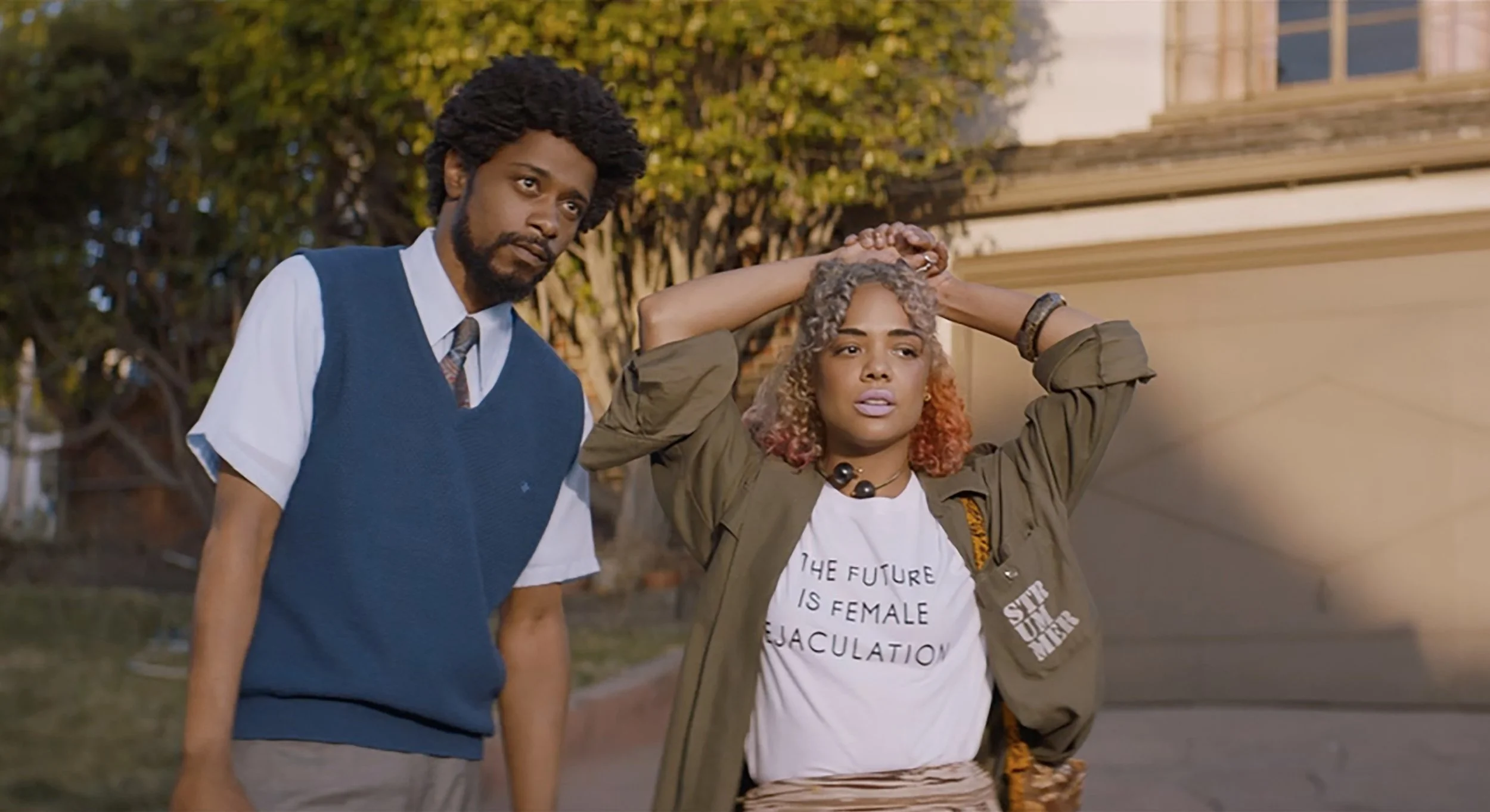 Lakeith Stanfield and Tessa Thompson in "Sorry to Bother You." Courtesy images