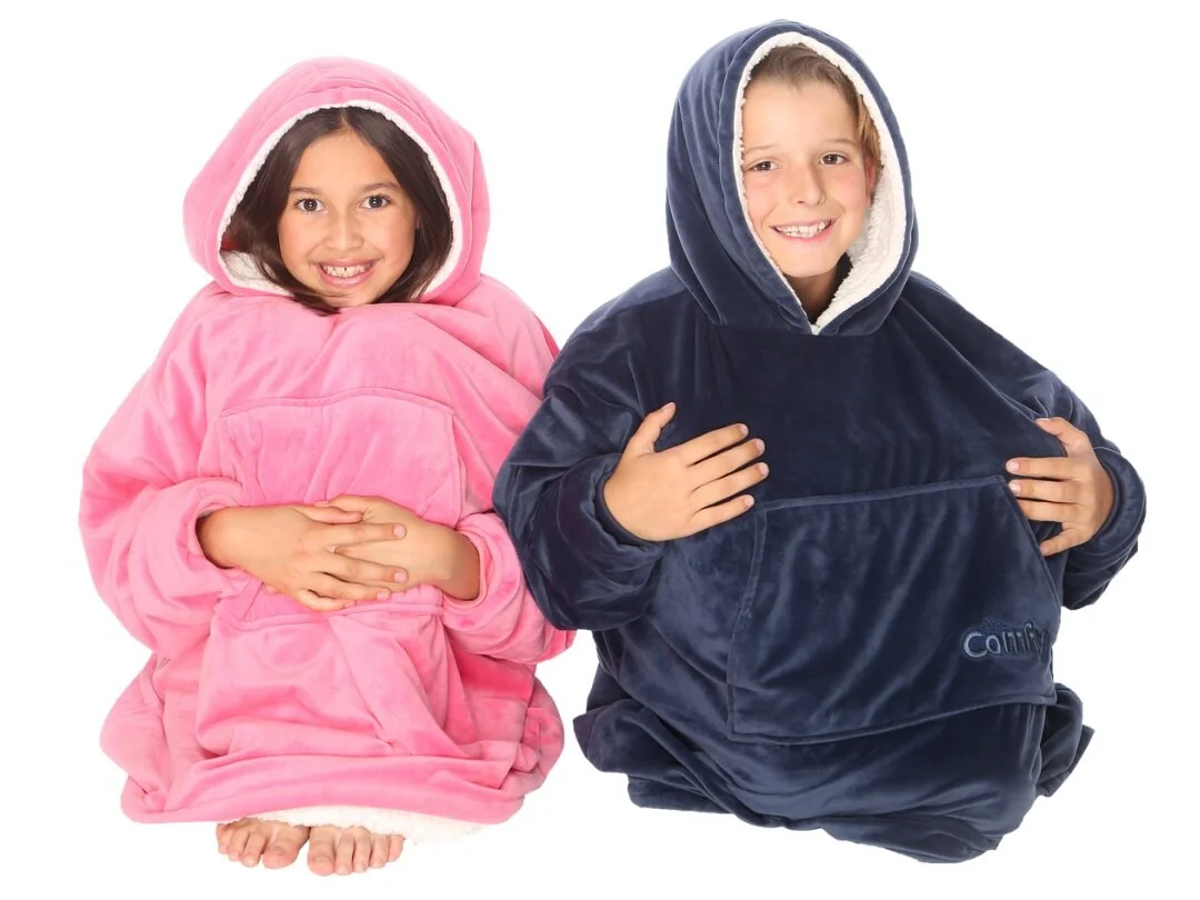 From completing their homework to playing video games, the original Comfy is now available in the perfect size for kids to get in on the fun! This supersized hoodie feels like amazing inside and out, with the outside made with fleece microfiber and the inside premium fluffy sherpa, the nest way to describe this hoodie is that it feels like getting a hug from a cloud. Now available in Pink and Blue! And trust us, if you get this for the kids, you’ll definitely want to get one for the grown-ups too.