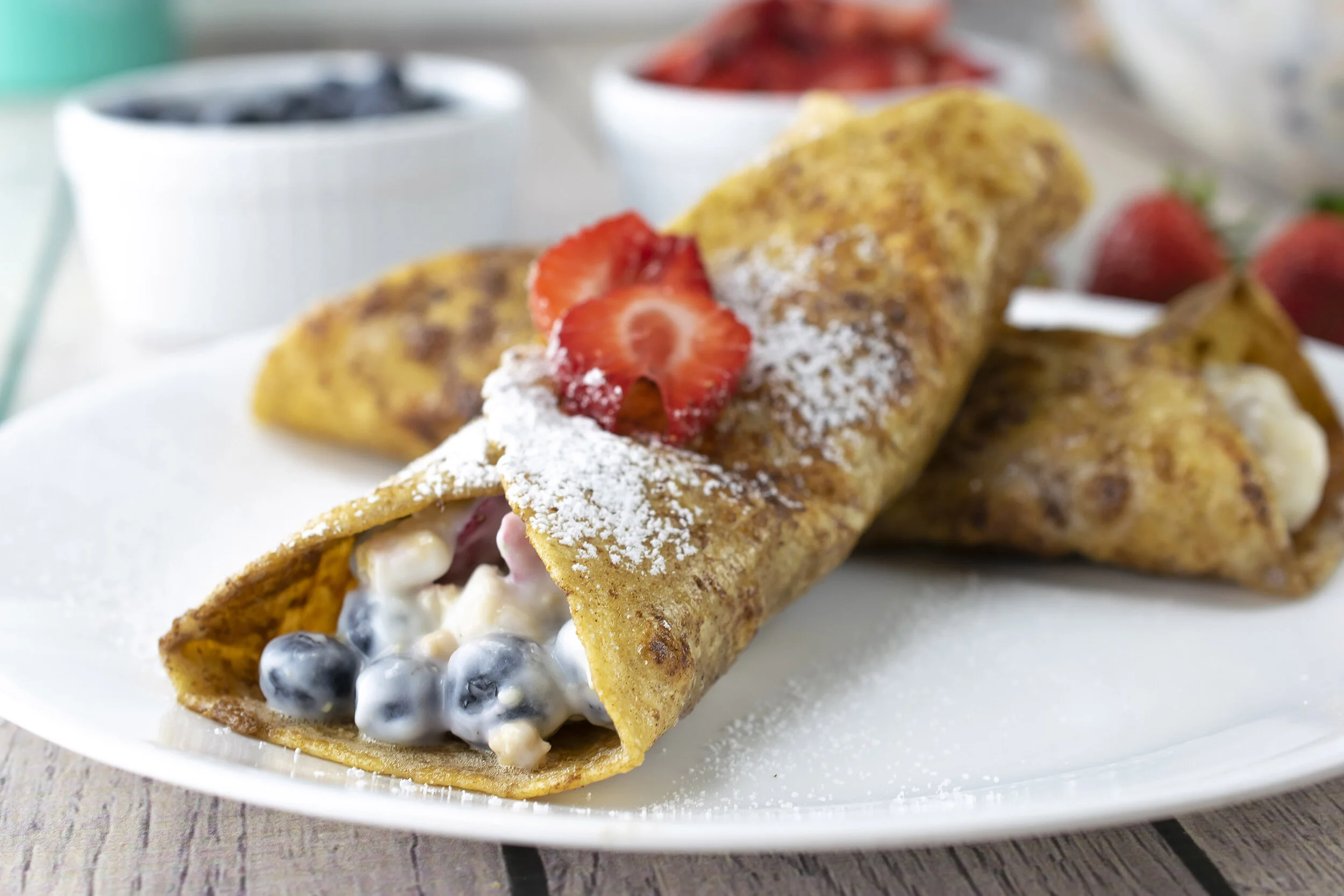 Add fruit to your breakfast with this take on French toast, which includes a mixture of berries, bananas and vanilla yogurt wrapped in tortillas and topped with a dusting of powdered sugar.